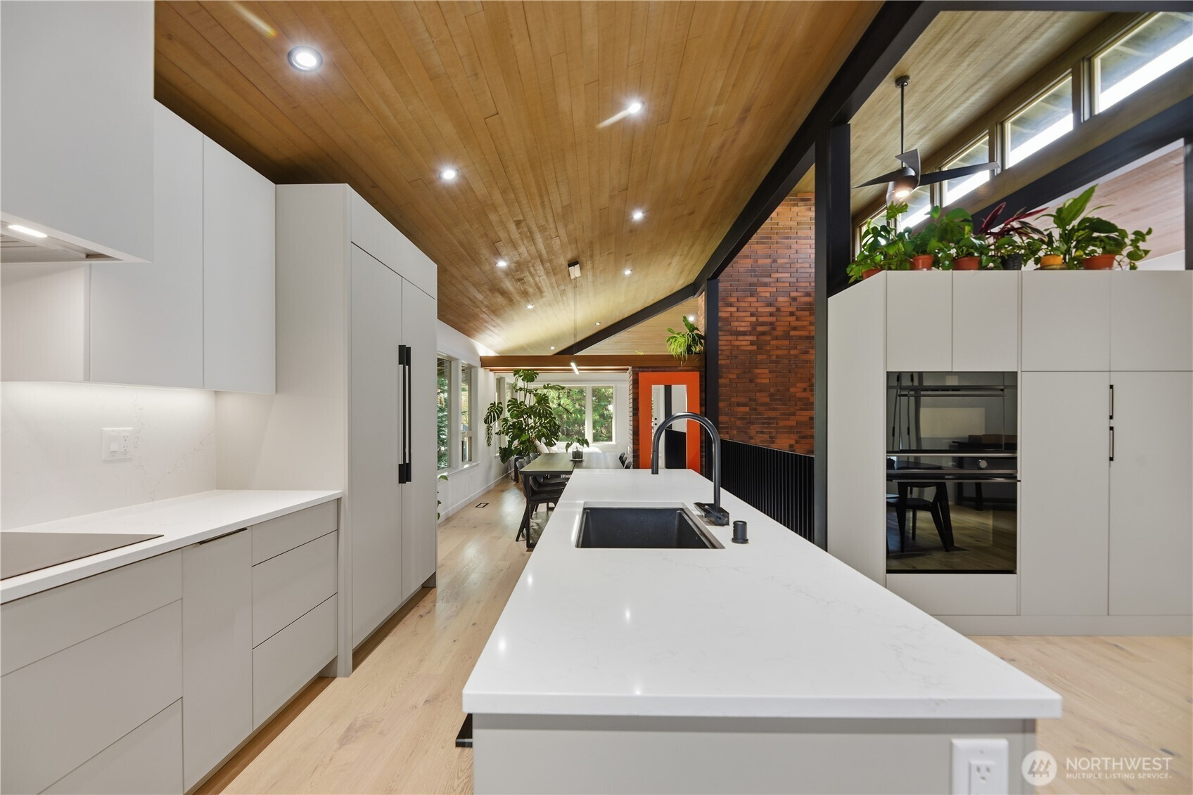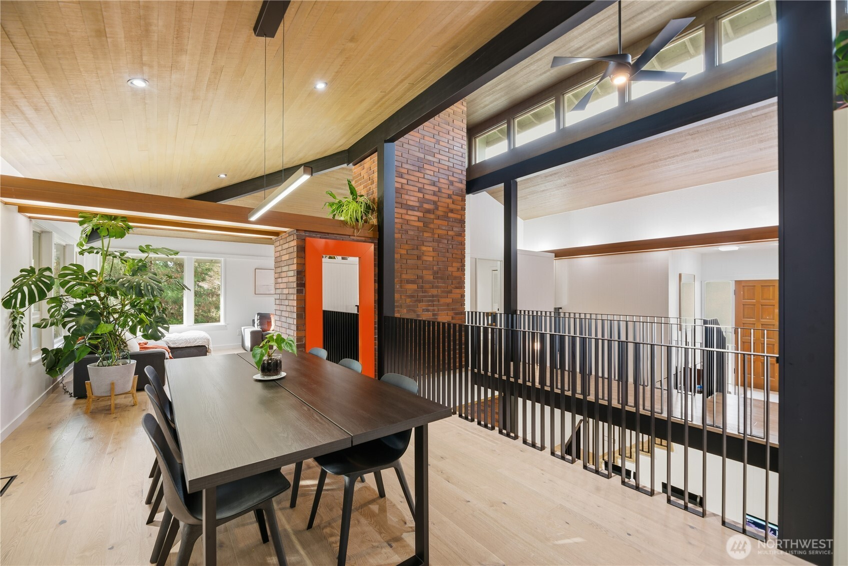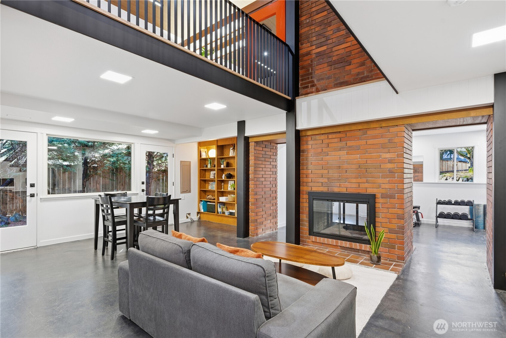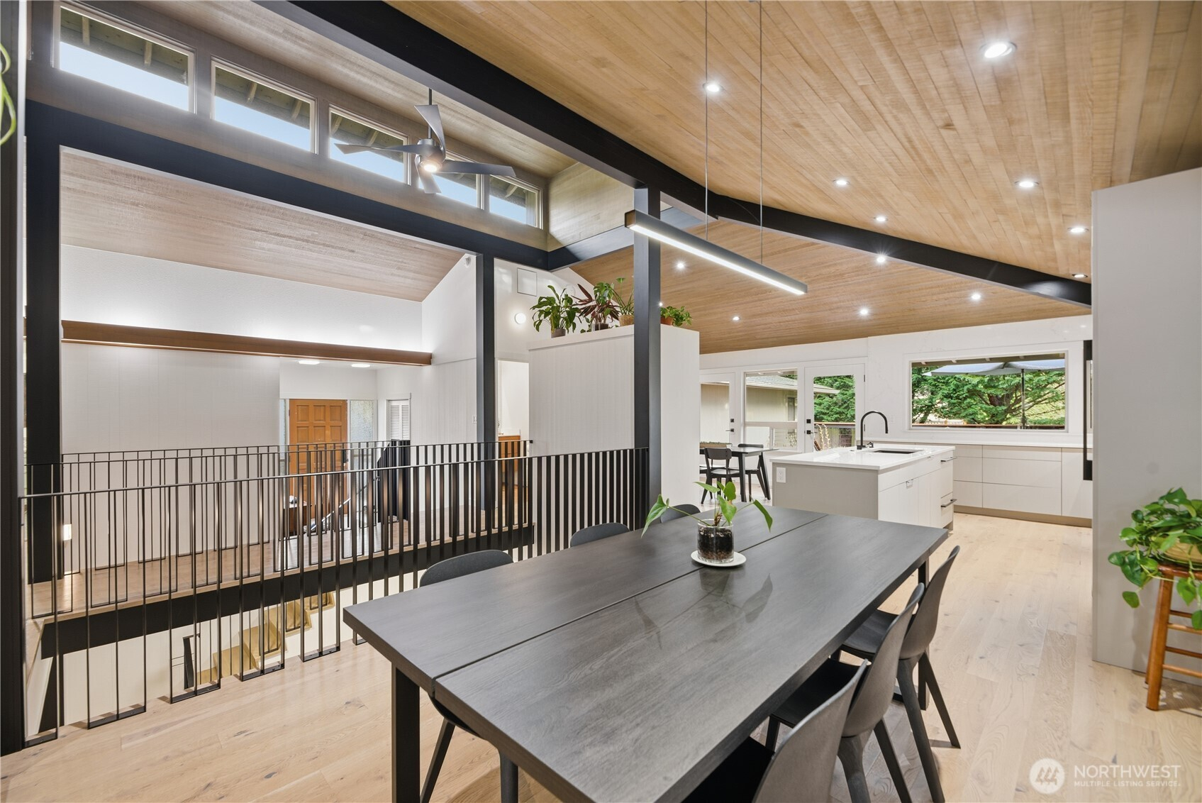 Exceptional quality throughout, from kiln-dried framing to powder-coated railings. Fisher & Paykel induction cooktop, oven, speed oven, dual-drawer dishwasher, large pantries & tech closet in kitchen. Clerestory windows & cedar ceiling frame a dramatic two-story floor-to-ceiling fireplace. Main-level primary suite offers a sunken tub/shower, sauna & private deck. Two additional main-level ensuite bedrooms. Lower level features two bedrooms, full bath, 2nd family room/library, flex space, soundproof office, laundry & storage. 2-car garage with loft storage + ample off-street parking. New heat pumps & water filtration. Walk to parks, schools, trail, library & market.