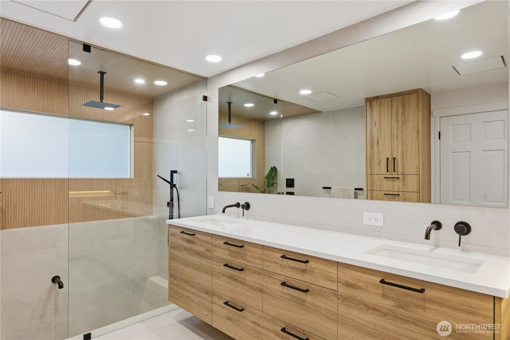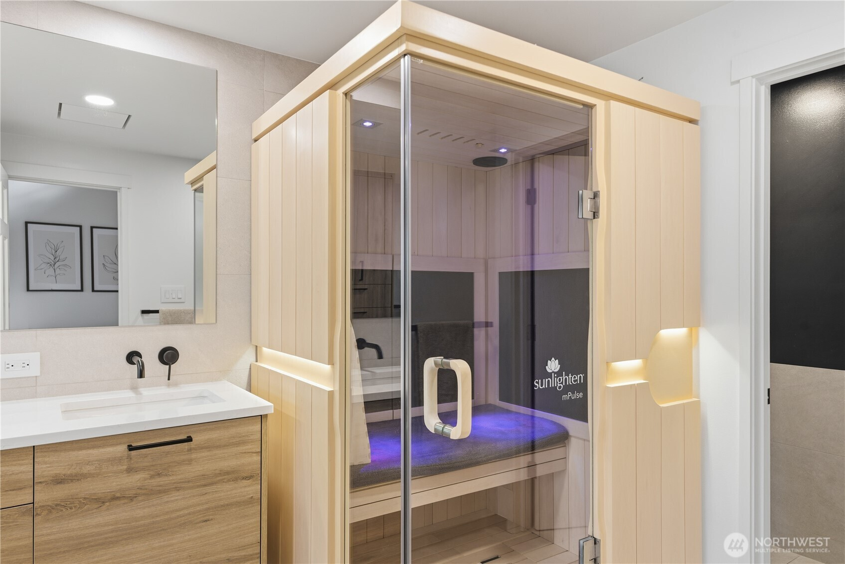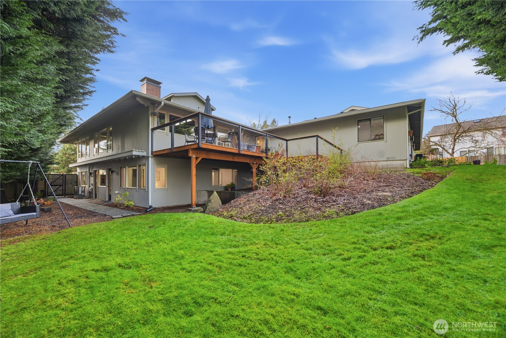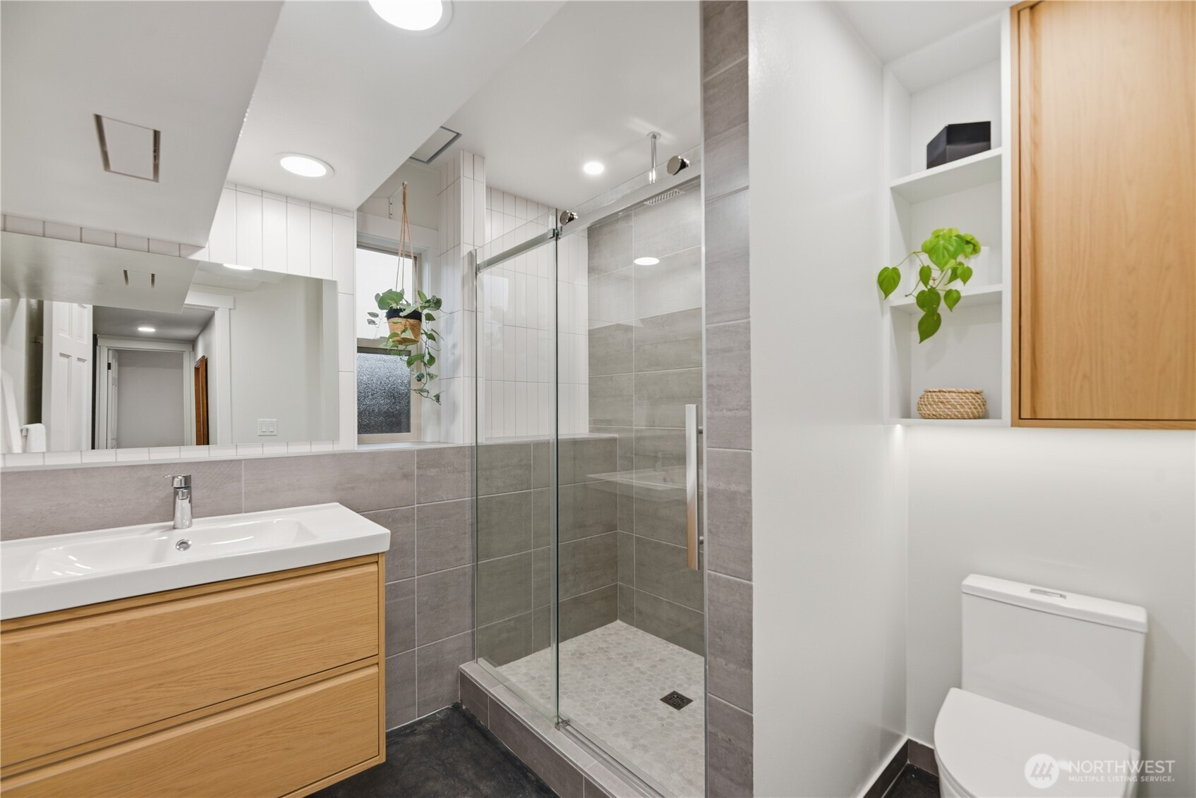 Exceptional quality throughout, from kiln-dried framing to powder-coated railings. Fisher & Paykel induction cooktop, oven, speed oven, dual-drawer dishwasher, large pantries & tech closet in kitchen. Clerestory windows & cedar ceiling frame a dramatic two-story floor-to-ceiling fireplace. Main-level primary suite offers a sunken tub/shower, sauna & private deck. Two additional main-level ensuite bedrooms. Lower level features two bedrooms, full bath, 2nd family room/library, flex space, soundproof office, laundry & storage. 2-car garage with loft storage + ample off-street parking. New heat pumps & water filtration. Walk to parks, schools, trail, library & market.